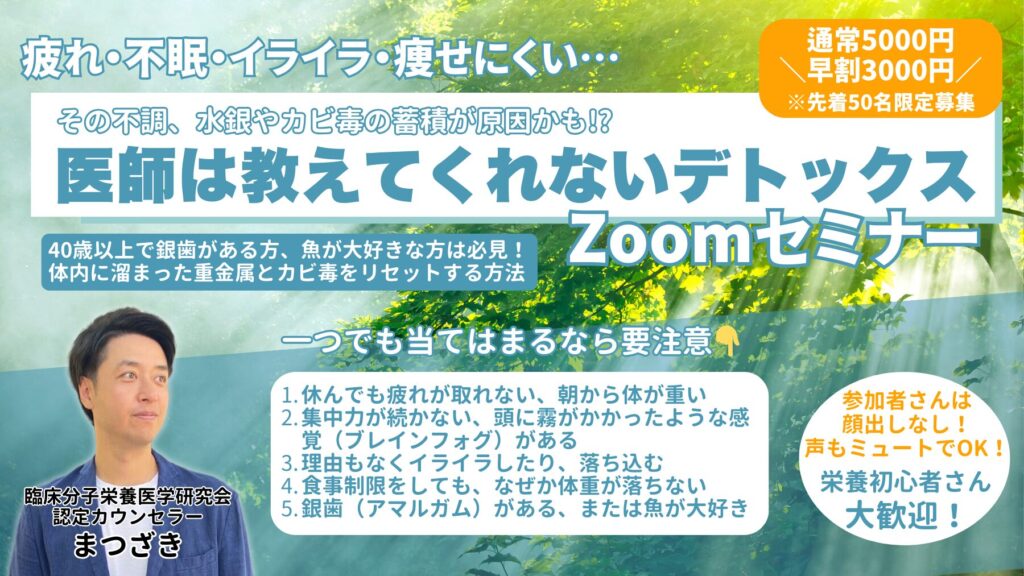 このセミナーでは、「デトックスこそ、安全な“順番”が何より大切」という前提に立ち、体内のゴミを掃除してエネルギーを底上げしていくための考え方と実践方法をわかりやすく解説していきます。